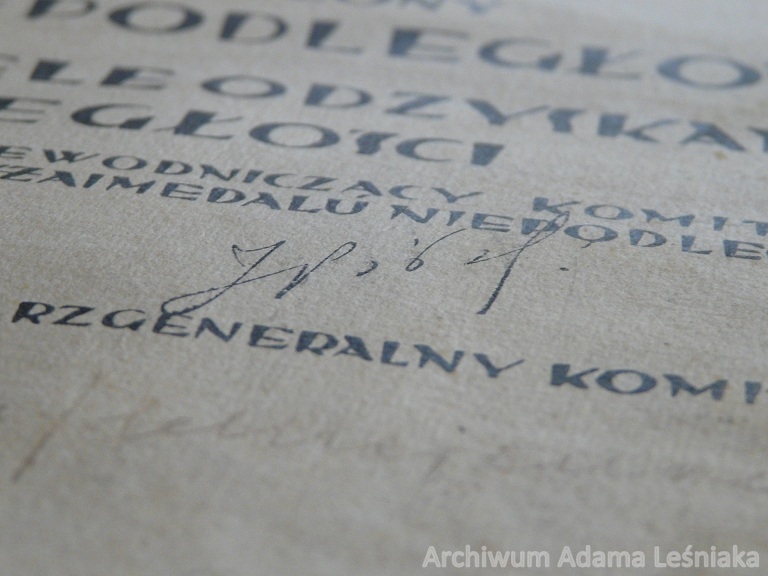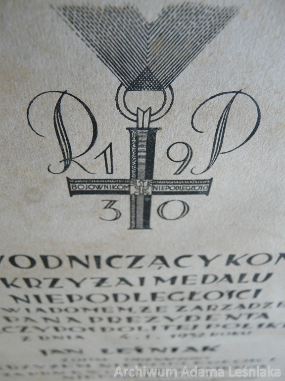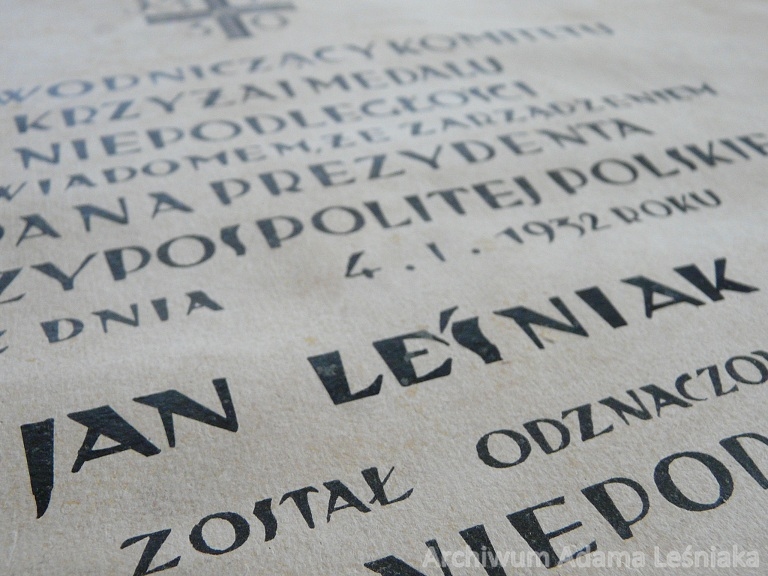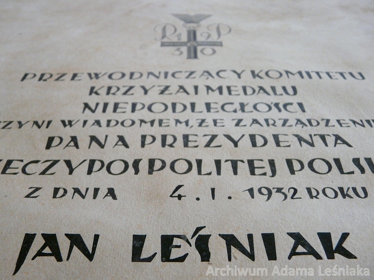Dyplom nadania Krzyża Niepodległości dla mojego pradziadka Jana Leśniaka z podpisem Józefa Piłsudskiego (04.01.1932).
