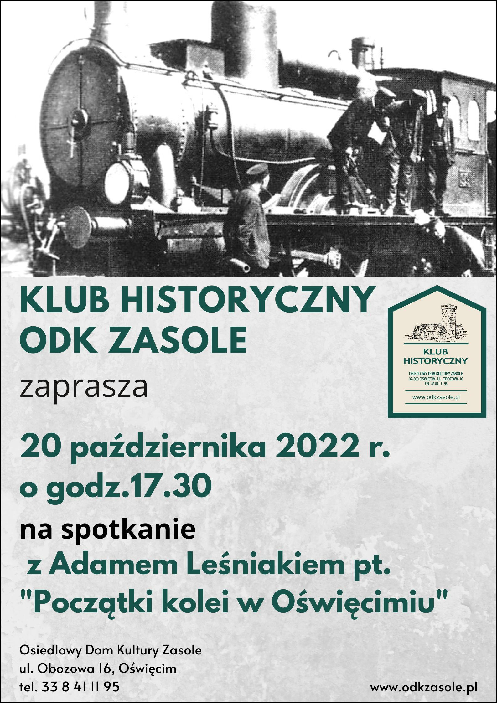 20 października 2022 roku odbyło się spotkanie w Klubie Historycznym ODK Zasole w Oświęcimiu, na które miałem przyjemność zostać zaproszonym w charakterze prelegenta. Stanowiło ono dla mnie okazję do zaprezentowania szerszej publiczności tematu początków kolei w Oświęcimiu, co nie ukrywam, było również idealnym zwieńczeniem przeprowadzonych przeze mnie prac i poszukiwań. Nagranie z wydarzenia zostało udostępnione na kanale klubu w serwisie YouTube. Można je również obejrzeć poniżej. Uczestnikom dziękuję za przybycie, poświęcony czas oraz miłą atmosferę na spotkaniu 🙂