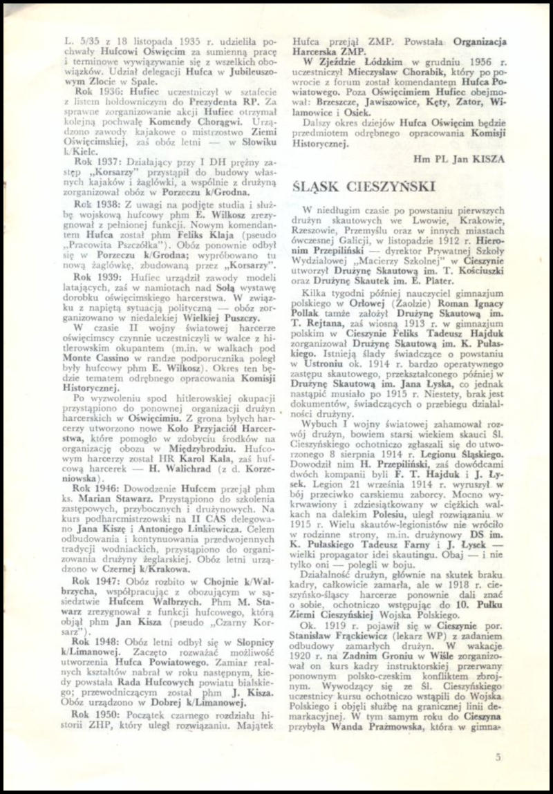 Myślę, że na koniec warto byłoby zaprezentować całość wspomnianego wyżej artykułu, tym bardziej, że jest on trudno dostępny, a może się przydać zainteresowanym tematyką oświęcimskiego skautingu.