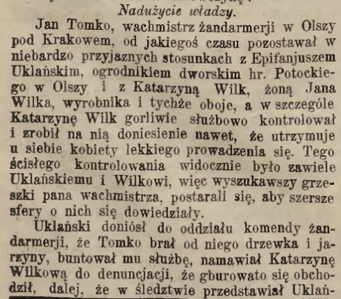 Nie ukrywam, że zaintrygowało mnie kto kryje się pod tak oryginalnym imieniem. Otóż swoje życie zawodowe Epifaniusz Uklański związał z ogrodnictwem i tak np. w 1901 r. był ogrodnikiem dworskim hrabiego Potockiego w Olszy. W „Głosie Narodu” (nr 274 z 29.11.1901 r., str. 3) znalazła się krótka notatka w sprawie z nim związanej: