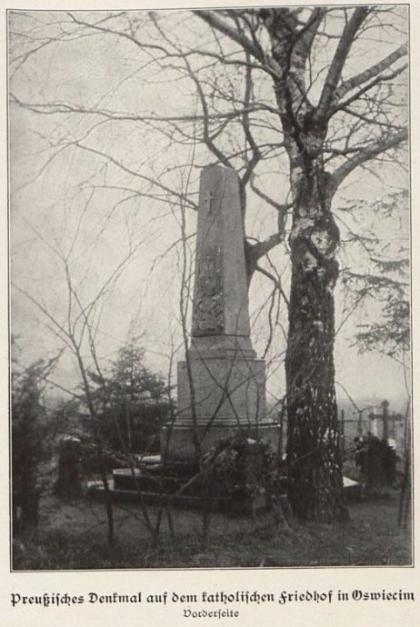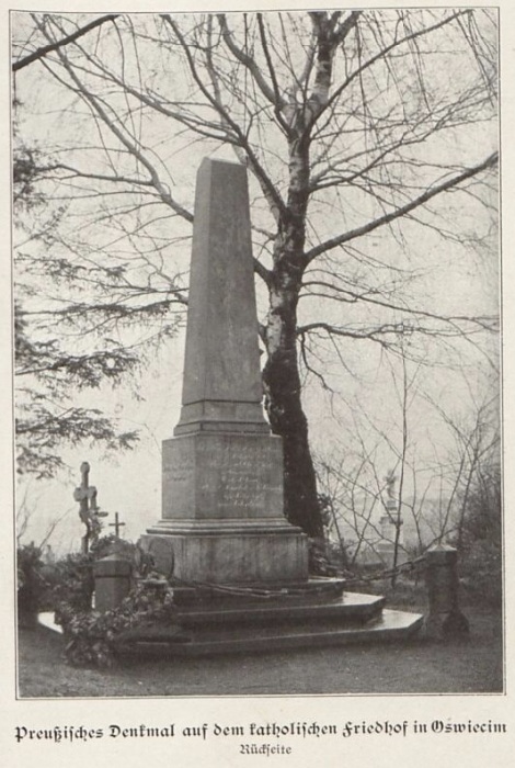 Osoby znające język niemiecki i przy okazji potrafiące czytać teksty pisane czcionką gotycką za pewnie nie przejdą obojętnie obok wydanej w 1911 roku książki autorstwa Richarda Knotela pt. „Von der Drei-Kaiserreich-Ecke”. Z mojej „oświęcimskiej” perspektywy istotne są dwa rozdziały: „Das Gefecht bei Oświęcim” (od str. 55, dotyczący austriacko-pruskiej potyczki pod Oświęcimiem 27.06.1866 r.) oraz „Oświęcim und seine Denkmaler” (od str. 73, na temat pomników żołnierzy poległych w w/w bitwie). Całą publikację można przeczytać pod tym LINKIEM na stronie biblioteki cyfrowej POLONA.PL. Dla niechętnych do przeglądania całości, poniżej zamieszczam umieszczone w książce zdjęcia pomników znajdujących się na cmentarzu w Oświęcimiu.