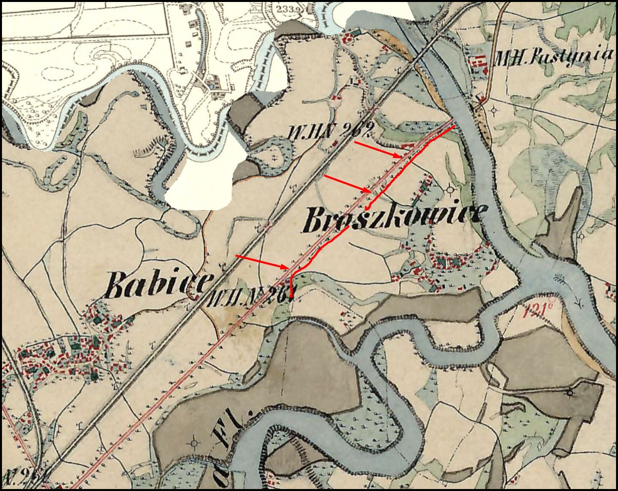 Odsypiska Brzoskowskiego, Placu Rakowskiego i pola Kaslowiec nie udało mi się zlokalizować na mapach, ale za to odnalazłem najbardziej na zachód wysuniętą część Babic oraz na północ, czyli folwark Nieczecz – niestety nie wzmiankowany przez Schneidara. Wycinki z map znajdują się poniżej (źródło: „Babice in Galizien Wadowicer Kreis”, Archiwum Narodowe w Krakowie, 29/280/0/24.1/3107, szukajwarchiwach.pl, LINK).