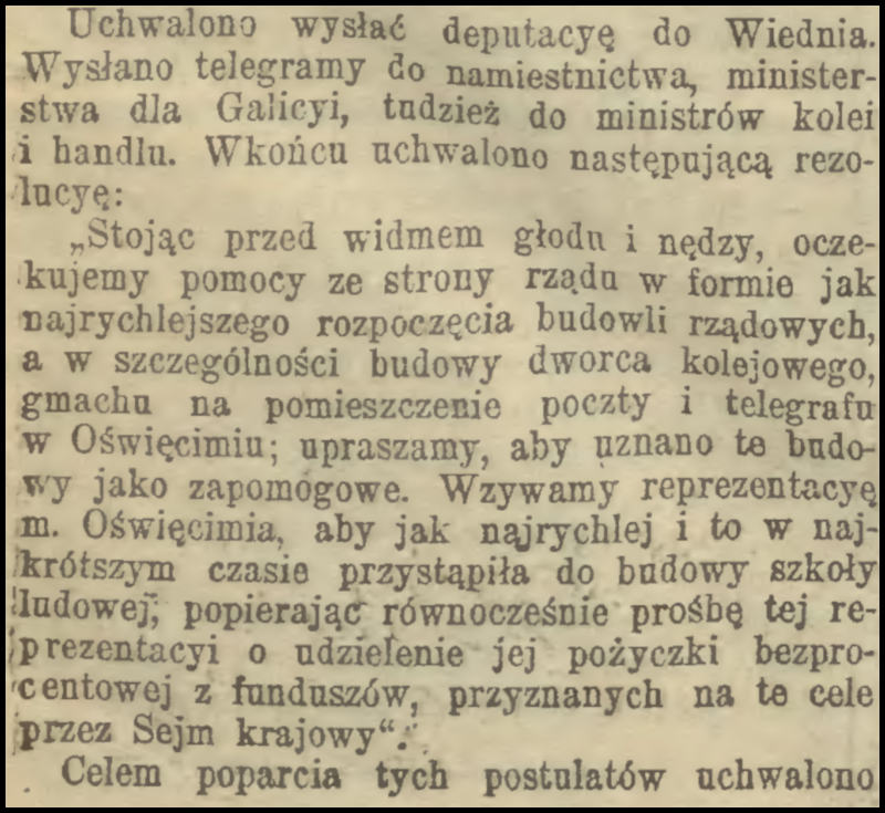 Poniżej wycinek prasowy o wiecu w sprawie bezrobocia, jaki odbył się w marcu 1914 r. w oświęcimskim hotelu Herz. Uczestnikiem spotkania był m.in. mój prapradziadek Władysław Karolus. Tekst pochodzi z czasopisma Nowa Reforma, nr 84 z 16.03.1914 r. Skan dostępny w Jagiellońskiej Bibliotece Cyfrowej (LINK).