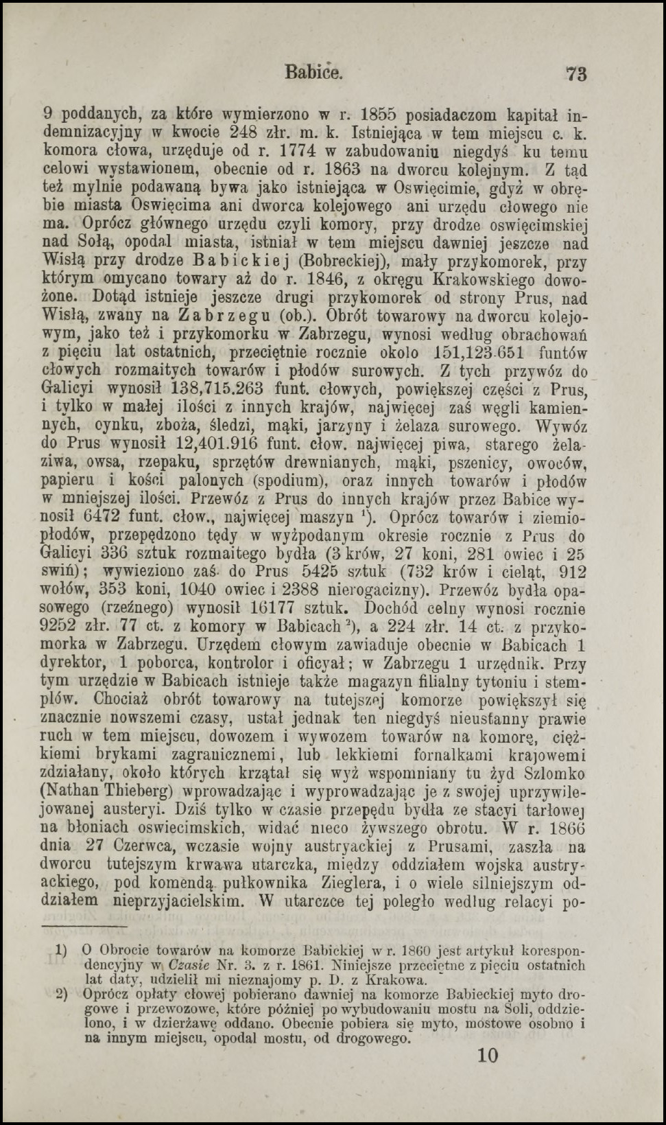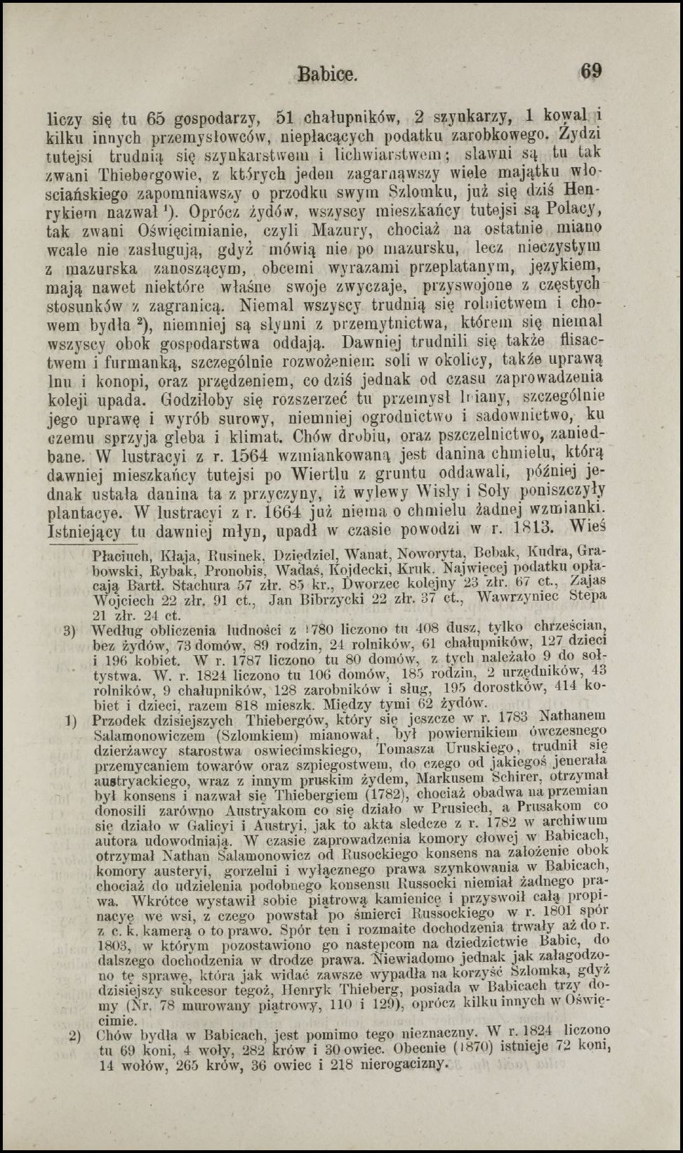 Nie dalej jak dwa tygodnie temu skontaktował się ze mną Pan Józef Rochowiak w temacie interesującego źródła do historii wsi Babice, koło Oświęcimia. Jak się później okazało, wskazany materiał zawierał również wiele wątków dotyczących historii miasta nad Sołą. Wszak dzieje Oświęcimia i Babic są ze sobą nierozerwalnie związane. Źródłem, które wskazał Pan Józef, był wydany w 1874 roku drugi tom dzieła pt. „Encyklopedya do krajoznawstwa Galicyi pod względem historycznym, statystycznym, topograficznym, orograficznym, hydrograficznym, geognostycznym, etnograficznym, handlowym, przemysłowym, sfragistycznym, etc. etc.” – koniec tytułu 🙂 Autorem tej publikacji jest Antoni Schneider – kolekcjoner i krajoznawca, żyjący w latach 1825-1880. Do dzisiejszych czasów zachowały jego bogate zbiory dotyczące historii Galicji, znane jako „Teki Schneidera” – dostępne w Archiwum Narodowym w Krakowie. Wracając jednak do opracowania hasła „Babice” w powyższej encyklopedii – jest na prawdę świetne i o wiele bardziej obszerne niż na przykład w „Słowniku geograficznym Królestwa Polskiego i innych krajów słowiańskich” (LINK dla porównania). Babice pojawiają się jeszcze w „Słowniku historyczno-geograficznym ziem polskich w średniowieczu” (LINK), ale tekst jest dość „ciężki” w odbiorze. Można powiedzieć, że Schneider stworzył w zasadzie „mini monografię” tej wioski. Poniżej zamieszczam skany w wersji elektronicznej udostępnione przez bibliotekę POLONA (LINK). Zachęcam do lektury, bo na prawdę warto.